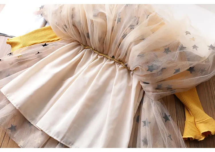 Платье для девочек, весна-осень, полосатые сетчатые платья с пятиуг...