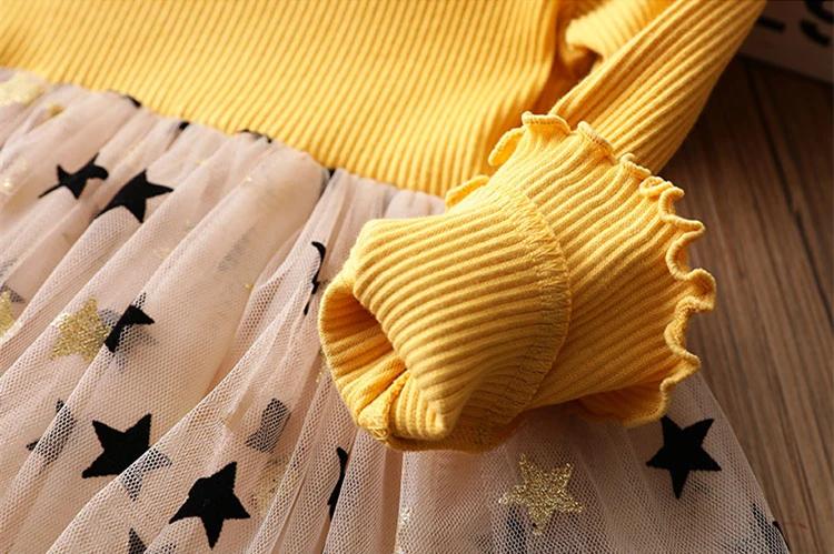 Осенне-зимнее трикотажное платье принцессы с длинными рукавами и блестками, модная осенняя одежда для девочек 2021, детское платье на день рождения