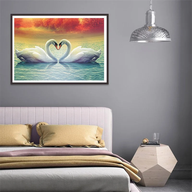 Алмазная 5D картина сделай сам, картина с лебедями, круглая вышивка, Набор для вышивки крестиком с животными, ручная работа, подарок для украшения дома