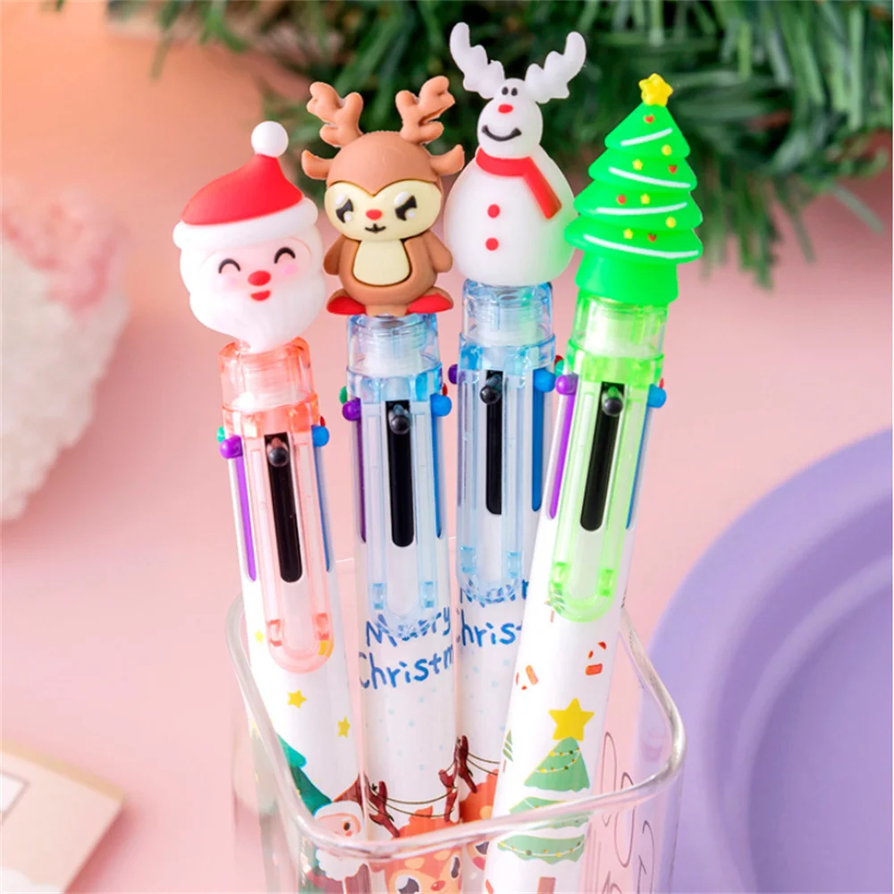 Рождественская шариковая ручка шести цветов, ручка с Санта-Клаусом,...