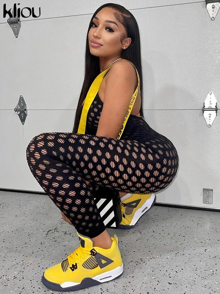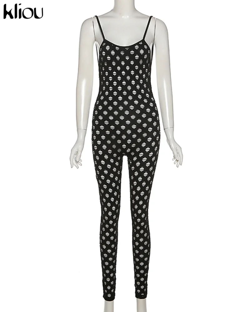Женский прозрачный комбинезон Kliou, однотонный сексуальный Облегающий комбинезон в клетку с вырезами, Клубные Комбинезоны
