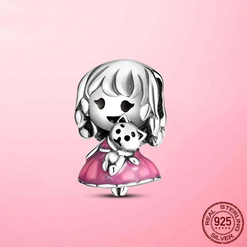 Бусины-кошки для маленьких девочек и мальчиков из серебра 925 пробы...