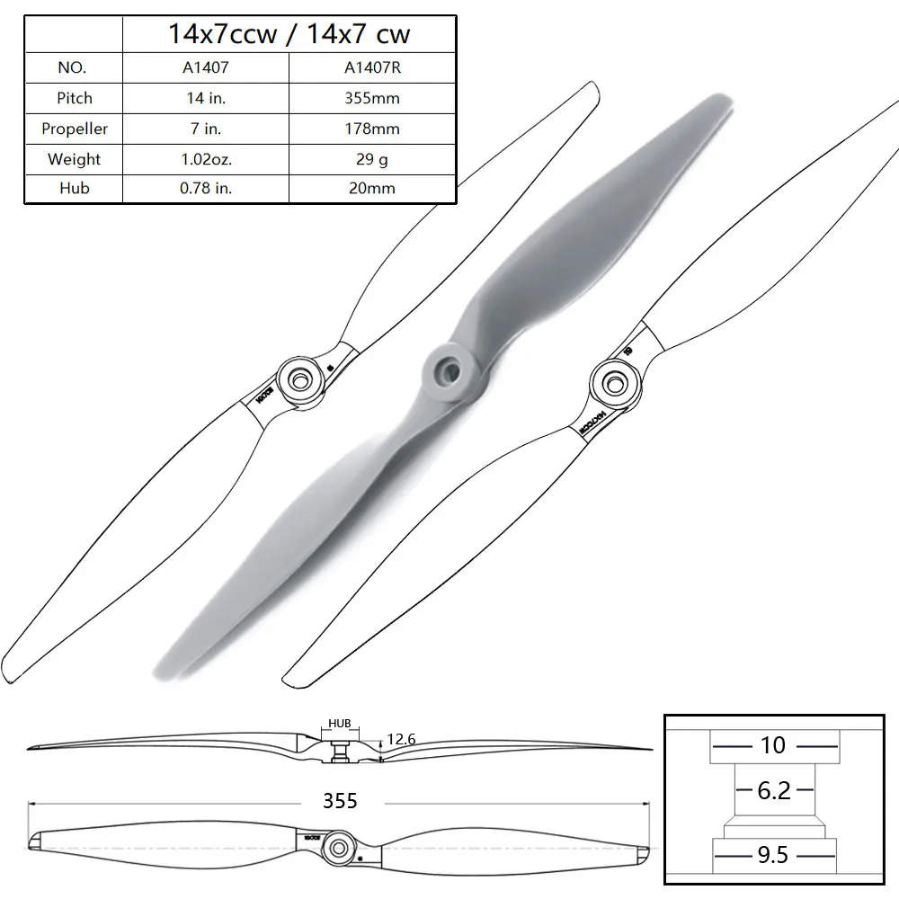 14 дюймов 14x7 CW CCW нейлоновый Стекловолоконный пропеллер с прямым приводом для радиоуправляемого самолета квадрокоптера мультикоптера гоночного дрона