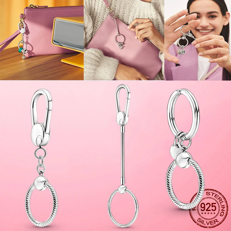 Женская Подвеска 925, оригинальные бусины-подвески, подходящие для Pandora Серебристый Брелок для ключей Jewelry