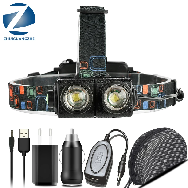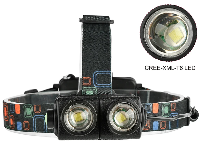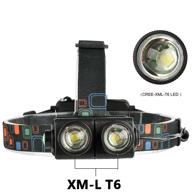 Светодиодный налобный фонарь XM-L T6 Zoom, с зарядкой от USB