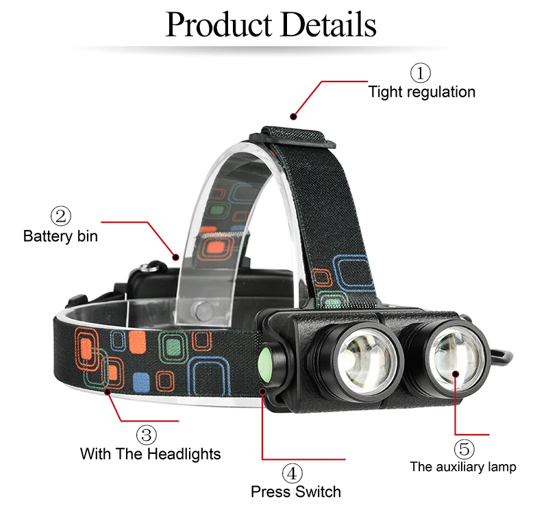 Головной фонарь с 3 светодиодами5 светодиодами, налобный фонарь, фо...