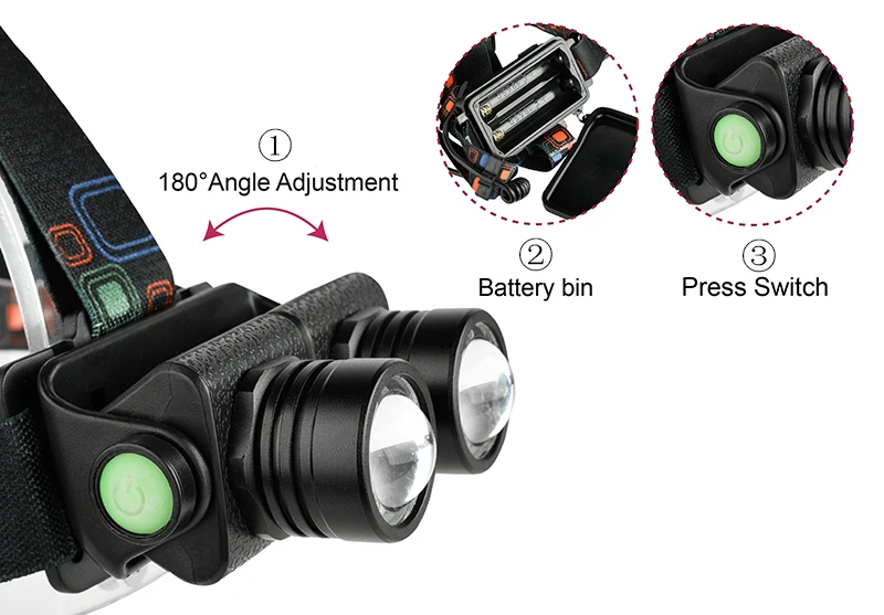 Суперъяркий светодиодный налобный фонарь для рыбалки 3 XM-L T6, нал...