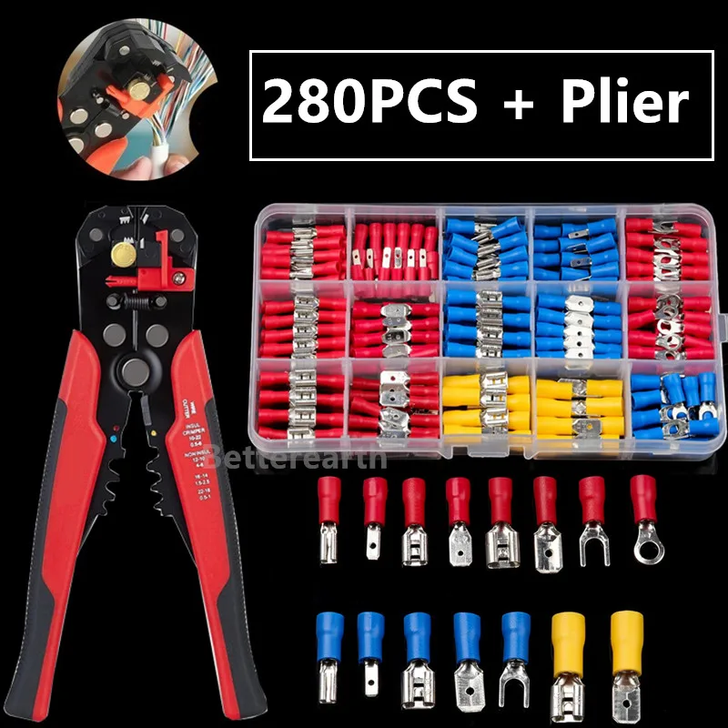 280 шт. Кабельный инструмент для зачистки проводов лопатка клеммы изолированный Кабельный соединитель Электрический провод Ассорти обжимное стыковое кольцо комплект вилок кольцевые наконечники