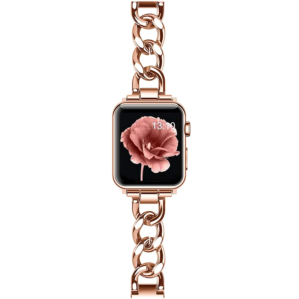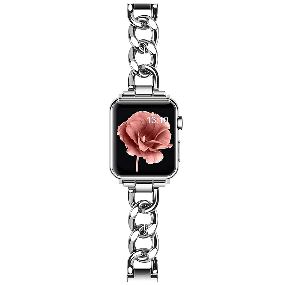 Ремешок из нержавеющей стали для Apple Watch Band 38 мм 40 мм 41 мм 42 мм 44 мм 45 мм iWatch SE 76543, изящный ковбойский браслет-цепочка