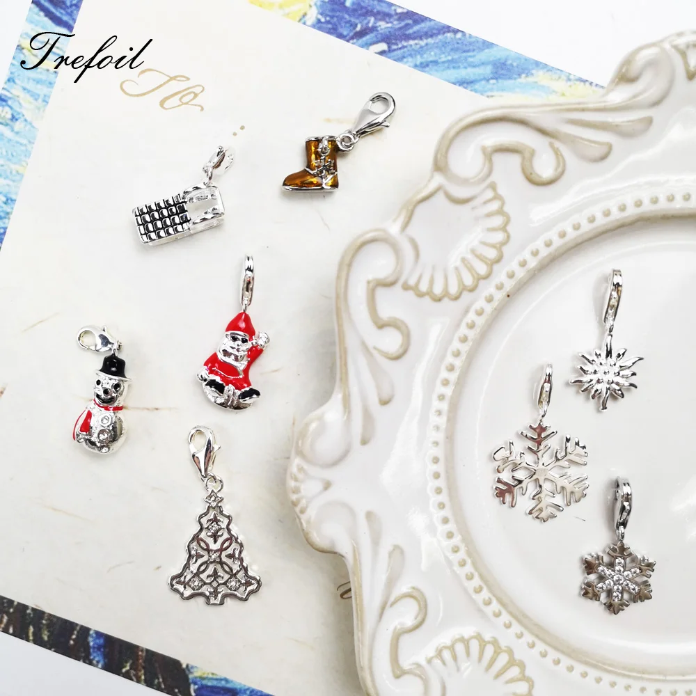 Подвеска в виде рождественской елки, Санта Клауса, зернистой подвески, модные женские Украшения, серебро 925 пробы, подарок, подходит для браслета, ожерелья