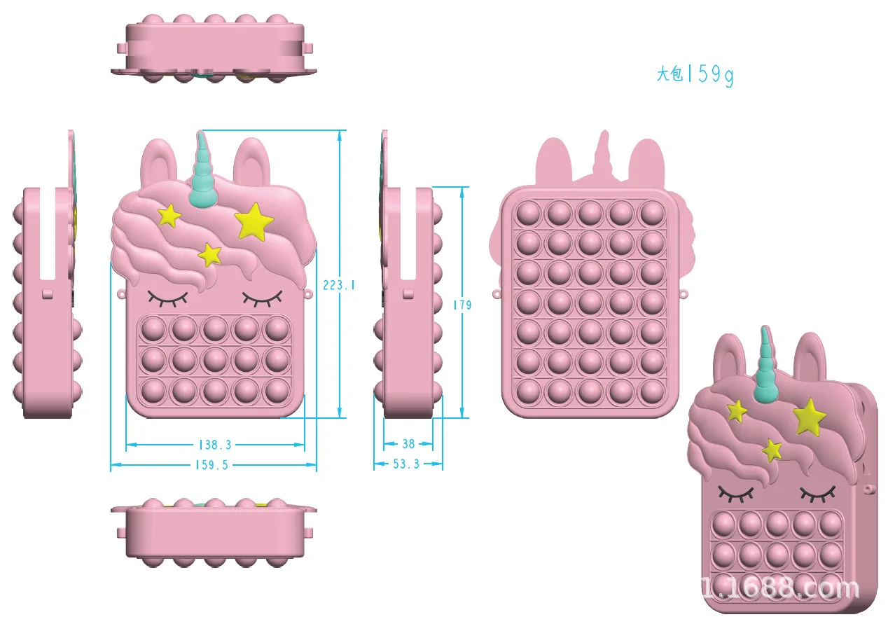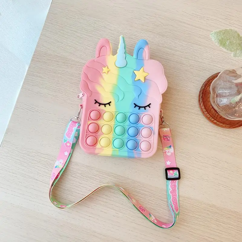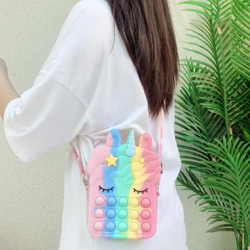 Pop It большой размер Xxl фиджет-игрушки пузырьки Радуга Единорог Кошелек для монет Женская сумочка из силикагеля простая сумка через плечо для девочек