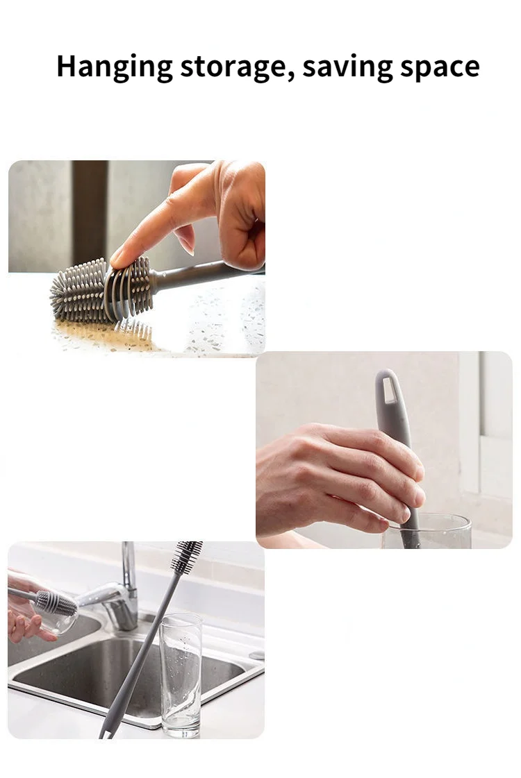 Силиконовая щетка для чашек, приспособление для очистки стекла, кухонный инструмент для очистки, длинная ручка, стеклянная бутылка
