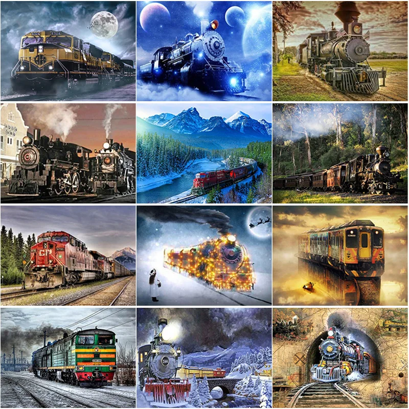 Алмазная живопись 5D сделай сам, картина с рисунком пейзажа, вышивка крестиком, поезд, полноразмерная вышивка, прямоугольная, круглая, для домашнего декора, ручное искусство, подарок