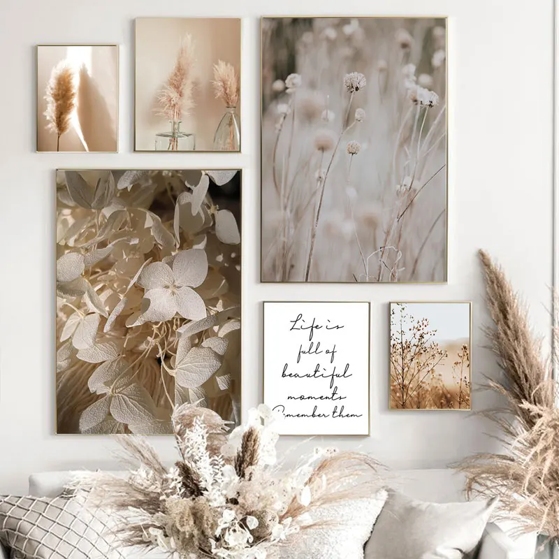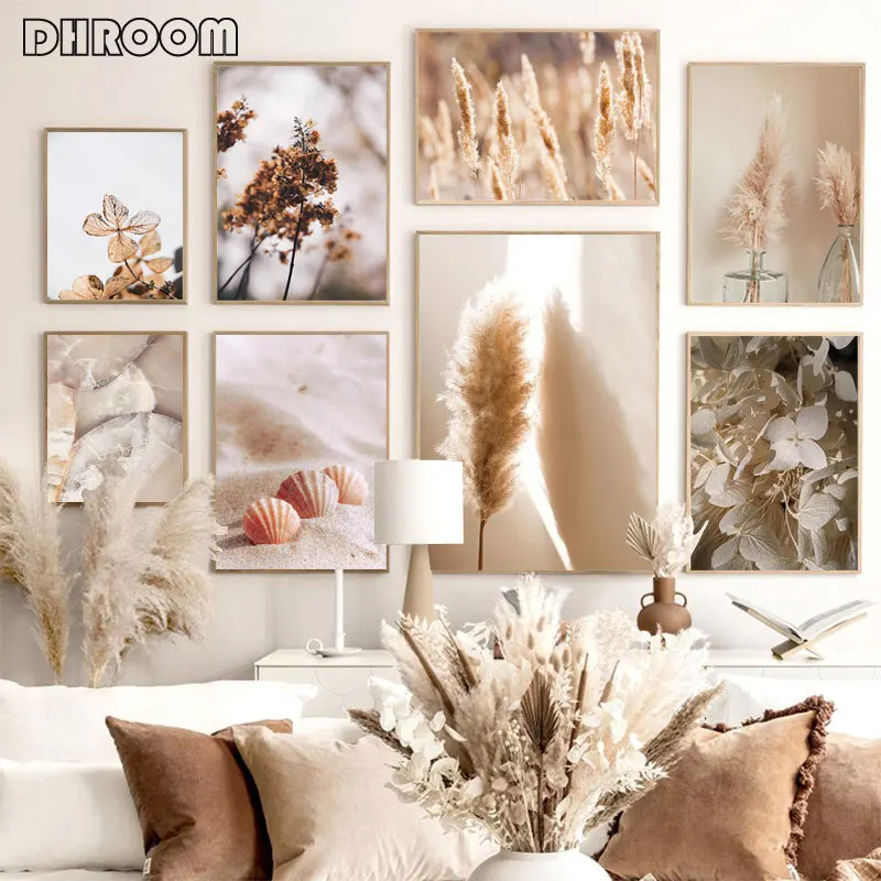 Настенный постер с изображением бежевых листьев растений, тростника, песочного ракушки, цветка, настенное искусство для спальни, украшение, холст, картина, картины для гостиной