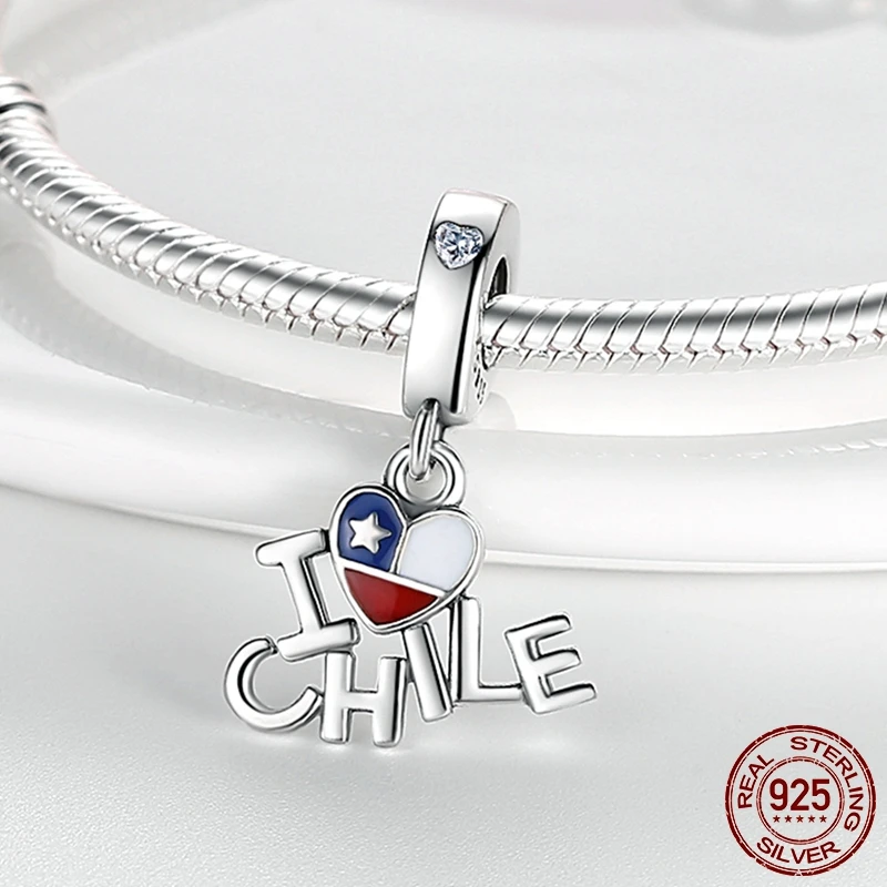 Подвеска серебряного цвета с флагом Испании, Чили, Бразилии, подвески для браслетов и ожерелий Pandora