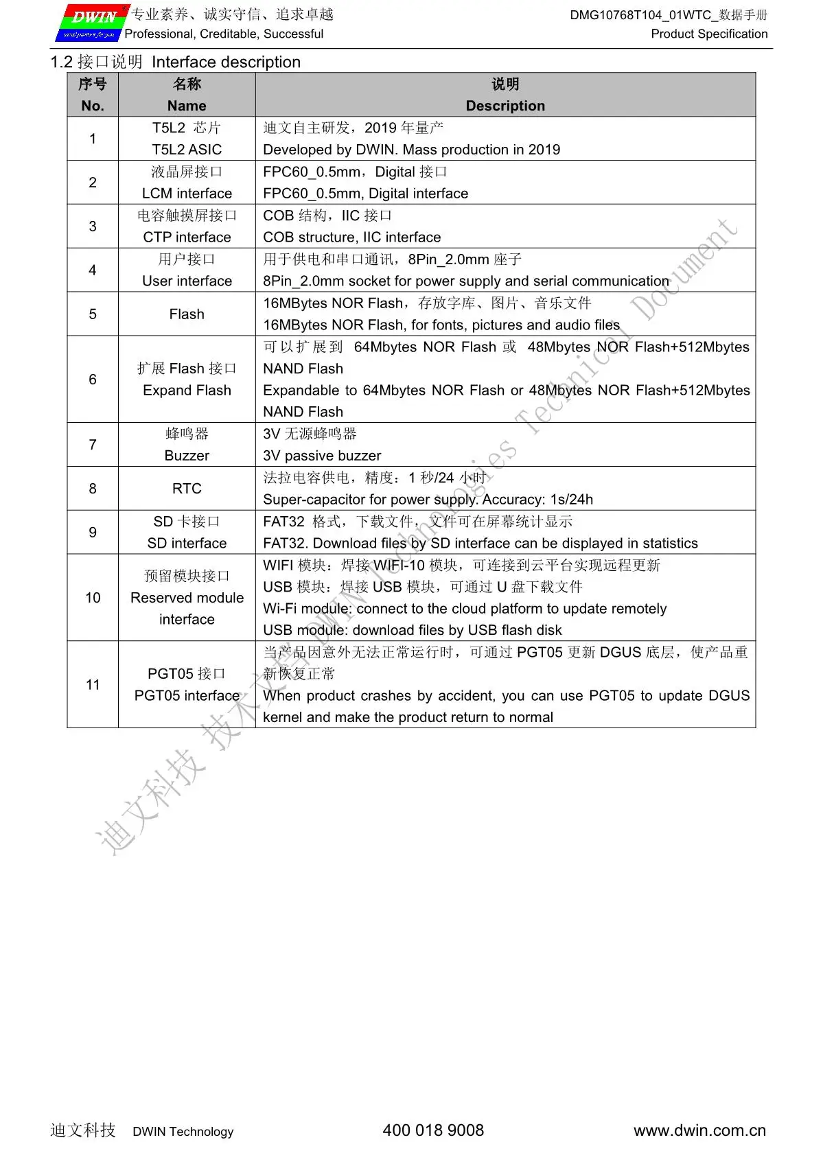 Reserved module interfaceWi-Fi module: connect to the cloud platform to update remotely USB module: download files by USB flash disk