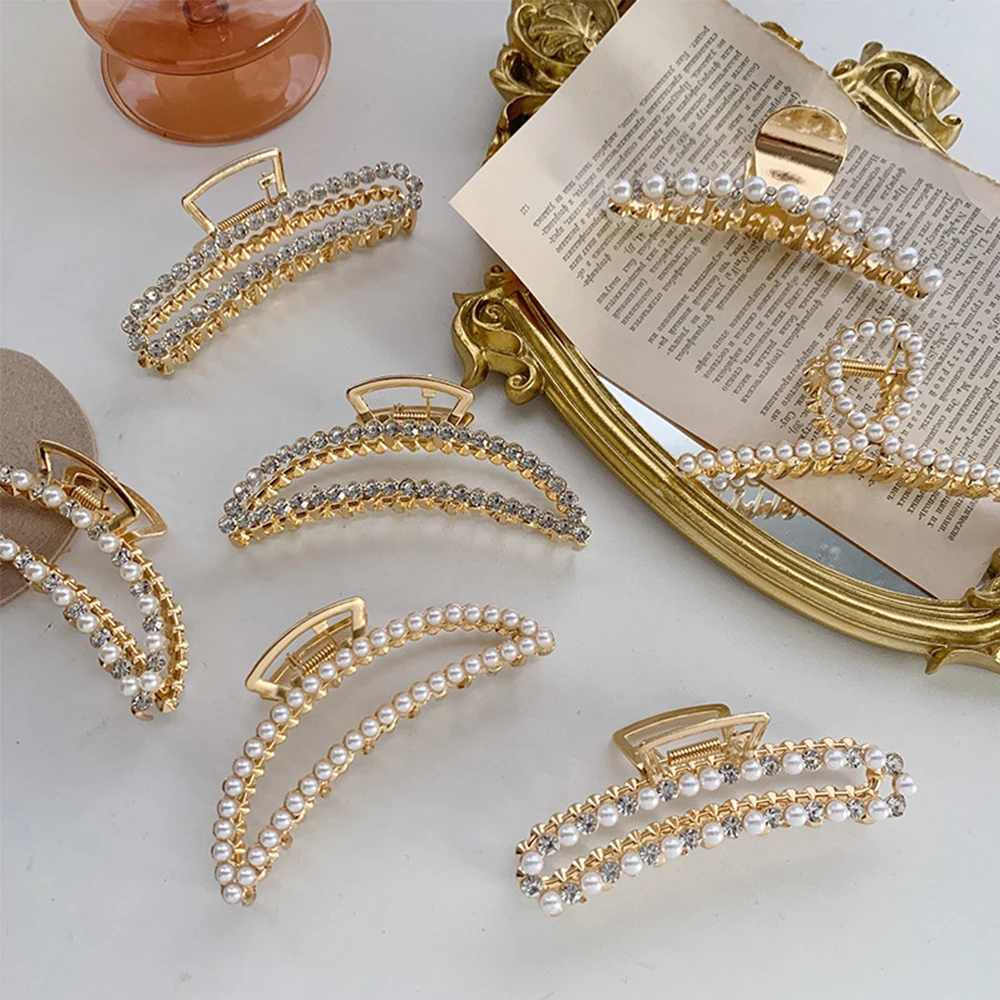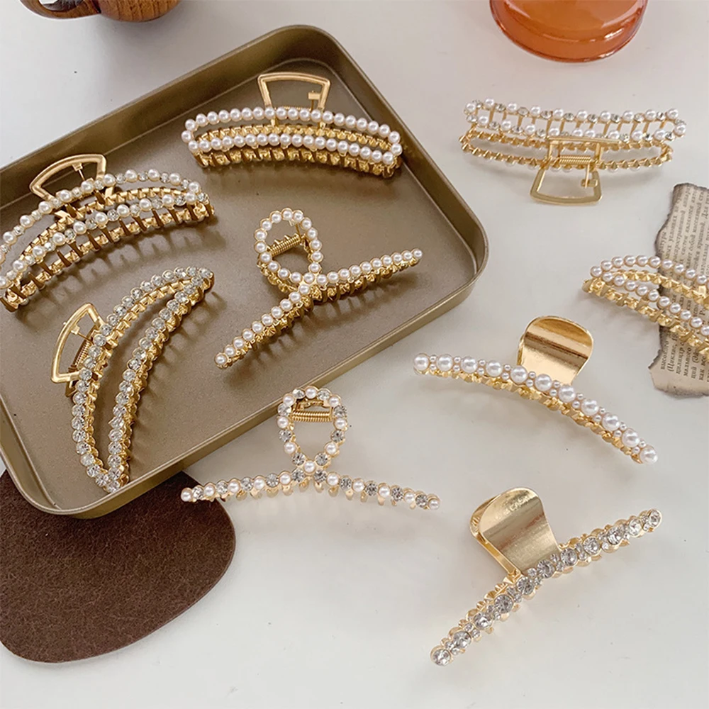 Женские Элегантные шпильки, золотые стразы, металлические полые геометрические Когти для волос, Винтажные заколки для волос для девочек, аксессуары для волос