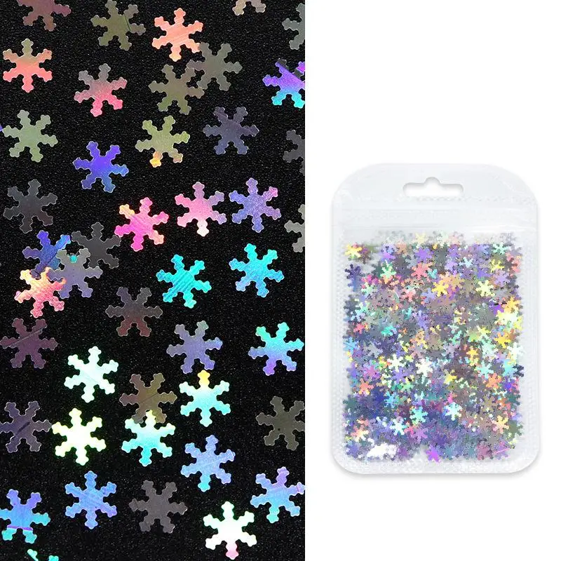 Рождественские снежинки, лазерные блестки для ногтевого дизайна, хл...