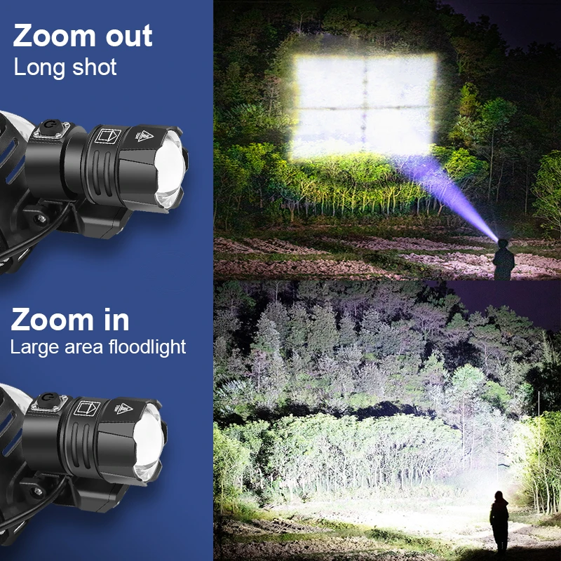 1100000LM XHP199 Самый мощный светодиодный налобный фонарь USB Перезаряжаемый налобный фонарик XHP160 Светодиодный налобный фонарь 18650 XHP90 Масштабируемый налобный фонарь