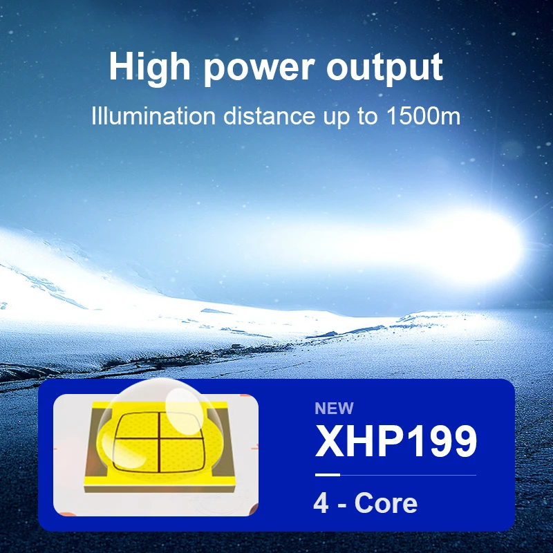 ※Мы обращаем внимание на качество и обновление продукции. Предоставление клиентам новейших и высококачественных продуктов-это наш принцип обслуживания. Поэтому мы разработали фитиль XHP199 для этой фары, который является самым мощным, самым ярким и лучшим качественный фитиль в AliExpress. Он использует 3*18650 батареи, может держать на 12 часов, расстояние освещения более 1700 метров, 4 режима, подходит для рыбалки, охраны, кемпинга, патрулирования, охоты и т. Д.