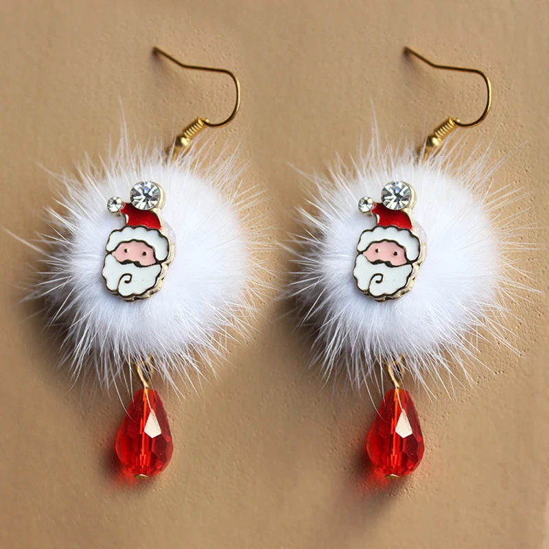 Элегантные длинные висячие серьги для женщин с меховым помпоном в виде шара, рождественский подарок, рождественские серьги, аксессуары, милая Мода, осень