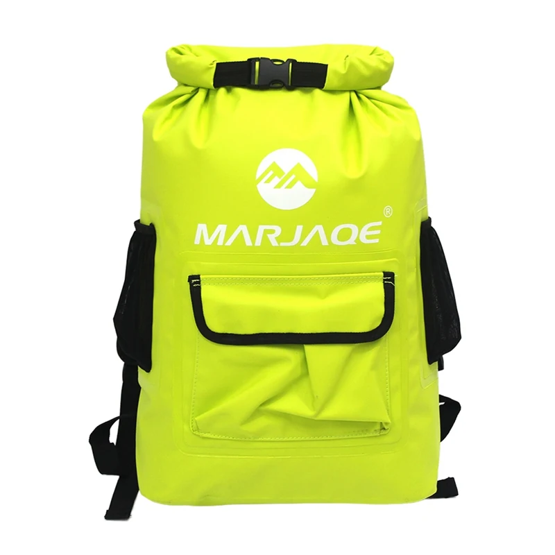 Название продукта: водонепроницаемый рюкзакНомер товара: 1502Название бренда: MARJAQEМатериал: 0,52 мм 500D ПВХ ламинированная сетчатая тканьВодонепроницаемость: IPX6(Может эффективно предотвратить попадание внешней брызг воды в мешок, но не может быть полностью погружен в воду в течение длительного времени, в противном случае мешок будет медленно просачиваться. Чехол плотно складывается, его можно полностью замочить в воде в течение нескольких минут и вода не попадет в сумку.Характеристики продукта: Эта водонепроницаемая сумка изготовлена из высококачественной водонепроницаемой ткани из ПВХ, износостойкой и устойчивой к царапинам, отличного качества. Он подходит для занятий спортом на открытом воздухе для защиты личных вещей от дождя, а большая плавучесть сумки может обеспечить большую защиту для пользователей, когда они сталкиваются с водой.1. Прочный и водонепроницаемый, аккуратное хранение: нейлоновая сумка для бутылок с обеих сторон, многослойные карманы для хранения, максимальная емкость до 22 л2. Производственный процесс, при помощи использования тепловых благодаря герметичности + шитьё, толщина материала достигает 0,55 мм, а также коробка из ПВХ с матовым порытием для Материал 500D используется.3. Головка рюкзака имеет двустороннюю пряжку, которая может быть водонепроницаемой и непромокаемой после складывания. Он используется для путешествий на открытом воздухе и безопасного хранения предметов4, отделение для сухого и мокрого, может достигать 99% водонепроницаемого. Его можно использовать в качестве временного спасательного буя