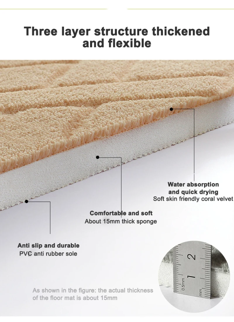 1. Супер мягкий: коврик для ванной имеет плотную и мягкую пену памяти, которая может обеспечить Вашим ногам уникальное чувство комфорта.