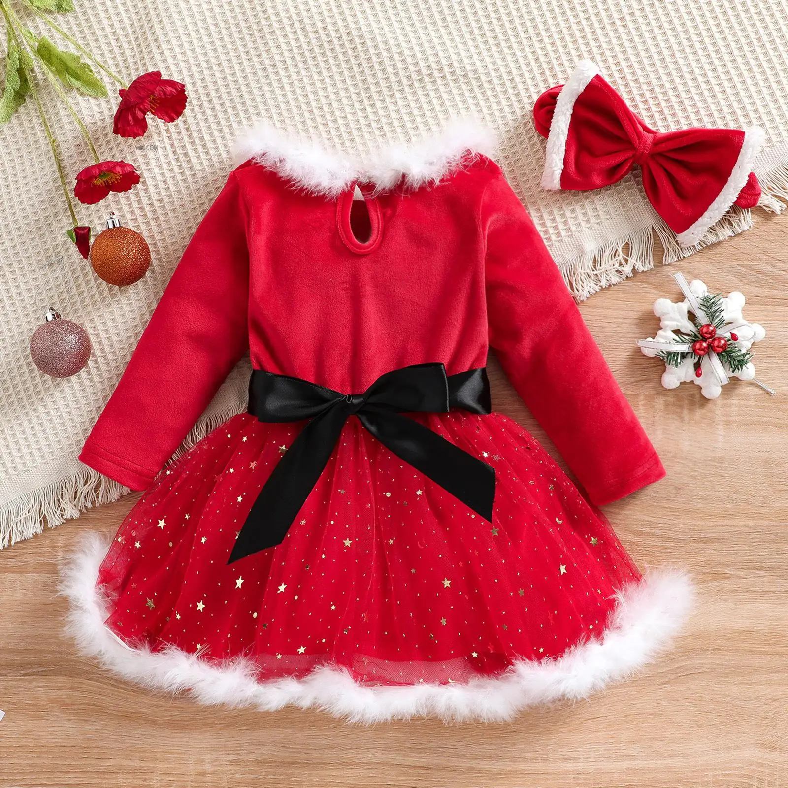 Рождественские наряды для маленьких девочек, бархатное Сетчатое пла...