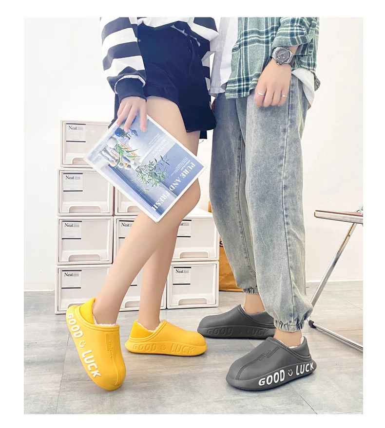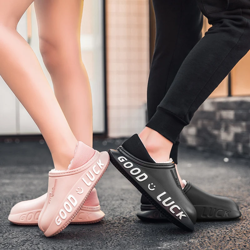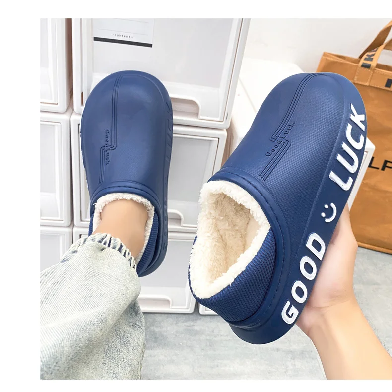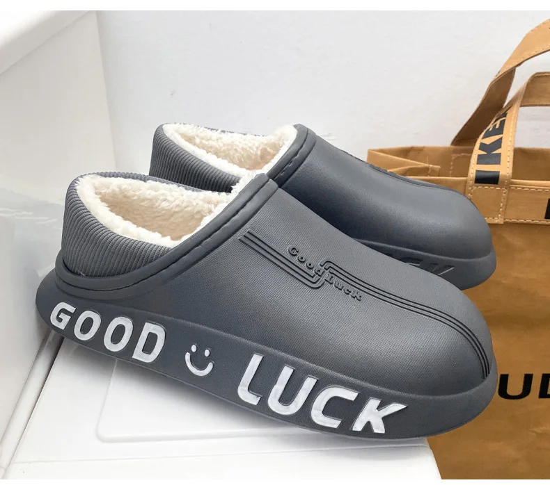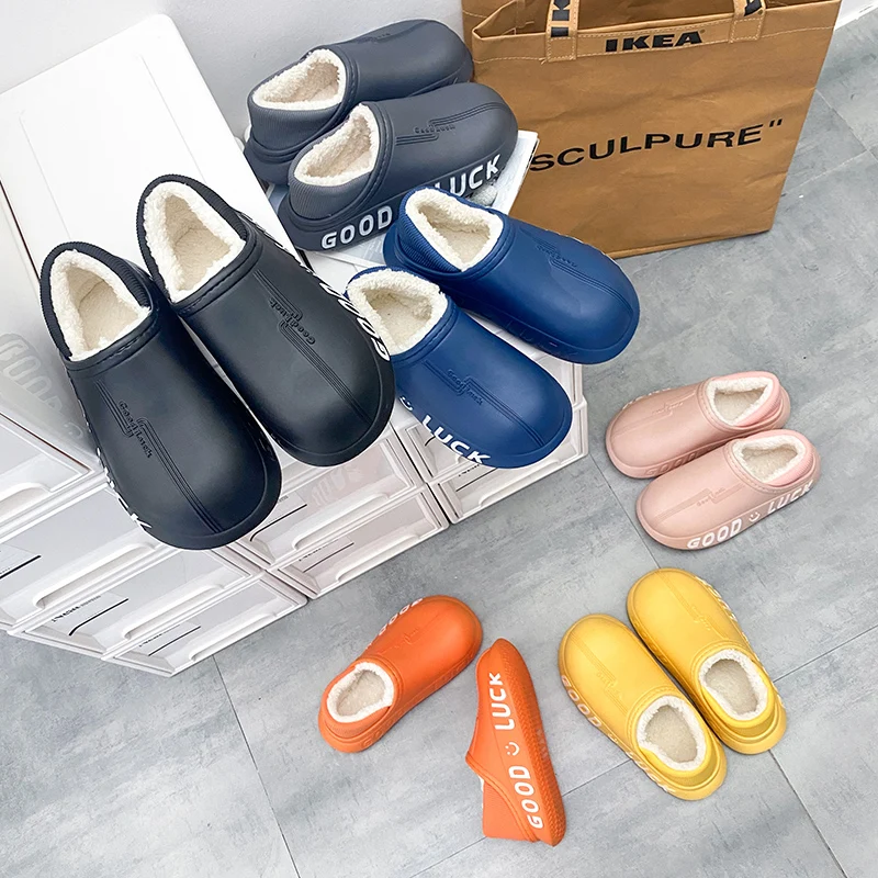 Мужские домашние тапочки, зимние новые теплые плюшевые женские домашние тапочки, удобные водонепроницаемые толстые тапочки двойного назначения для пар