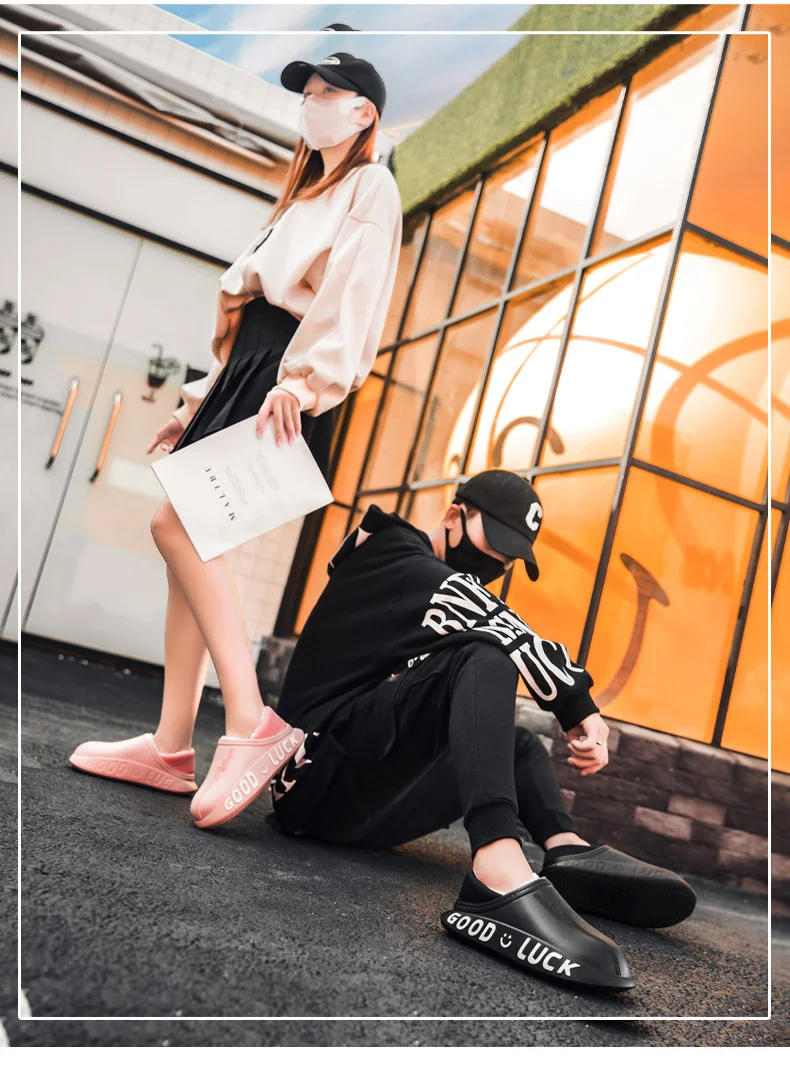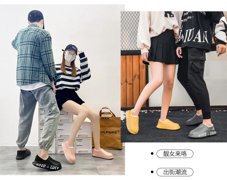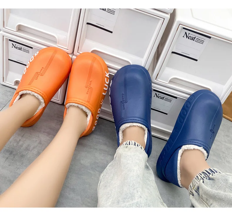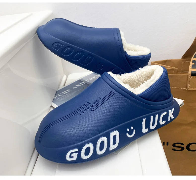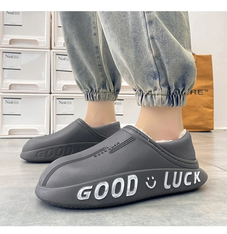 Мужские домашние тапочки, зимние новые теплые плюшевые женские домашние тапочки, удобные водонепроницаемые толстые тапочки двойного назначения для пар
