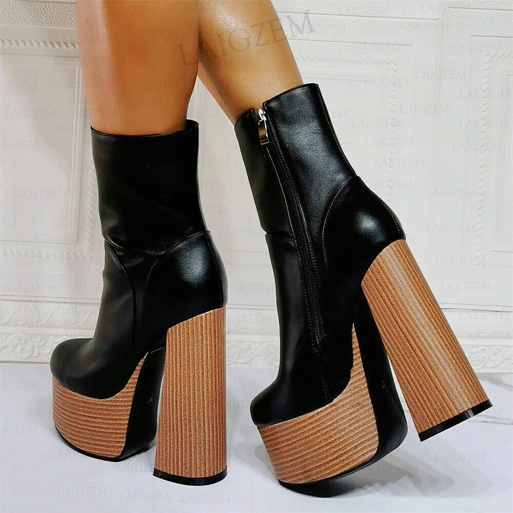 Женские ботильоны на платформе SEIIHEM, короткие ботинки из искусственной кожи на толстом каблуке, унисекс, женские ботинки, женская обувь, большие размеры 36 42 44 47