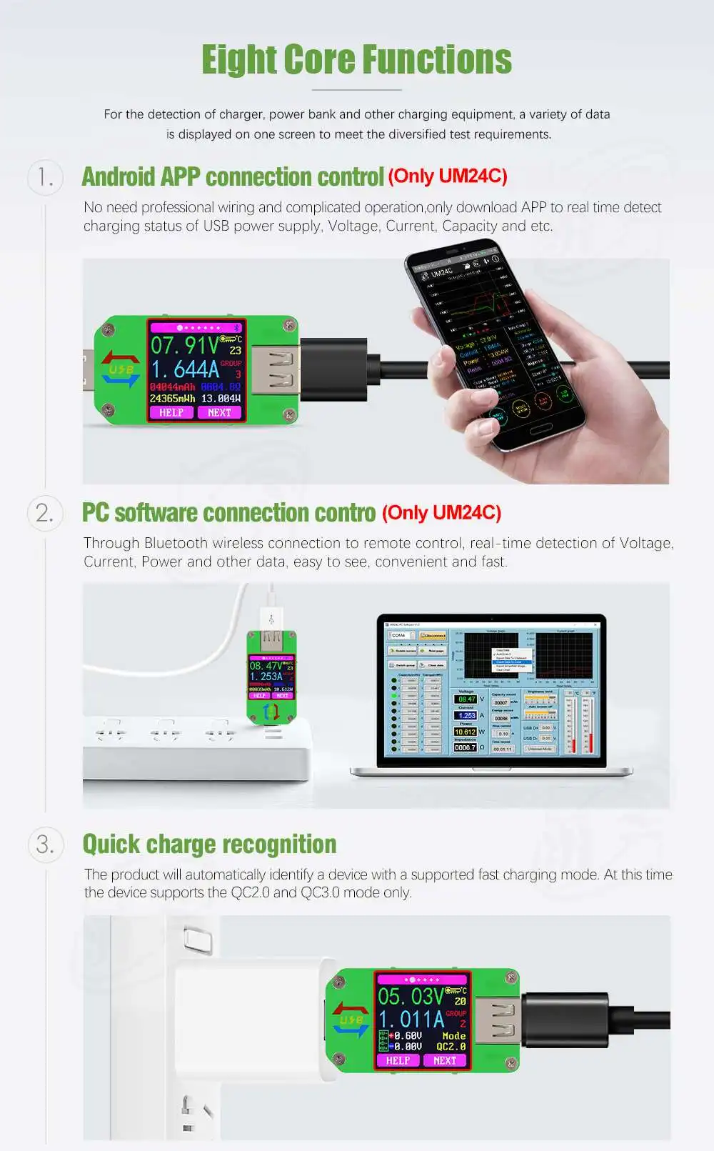 1. UM24-это версия связи (тип A), UM24C-версия связи по bluetooth (тип B).