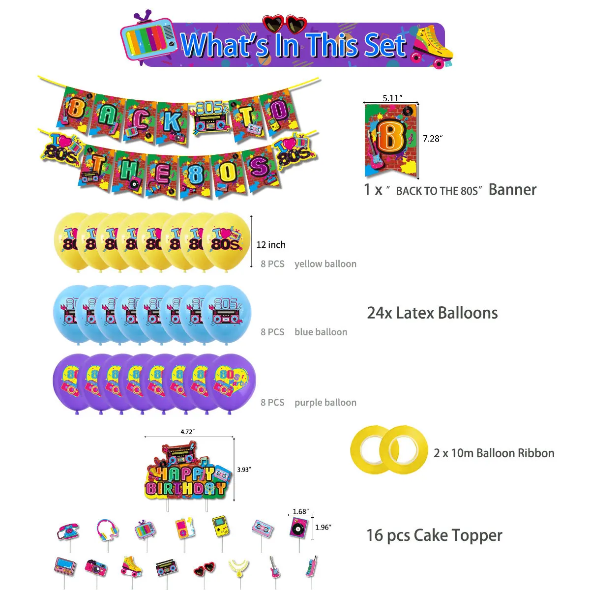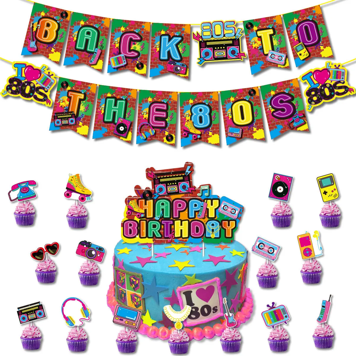Принадлежности для вечерние в стиле 80-х годов, воздушный шар в стиле дискотеки, баннер для торта, Топпер в ретро стиле, в стиле хип-хоп, набор украшений для вечеринки в честь Дня Рождения 80-х