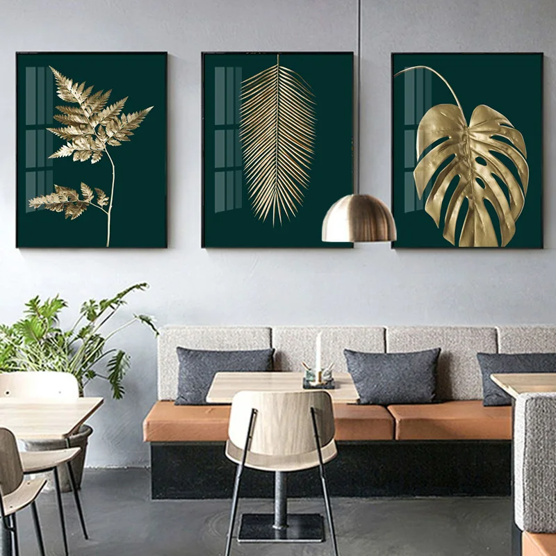 Роскошная картина в скандинавском стиле с изображением искусственной кожи с золотыми листьями, рисунок для гостиной, Настенная картина, декоративная нишевая печать, Триптих