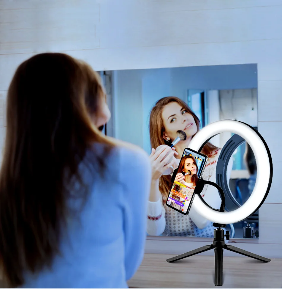 кольцевая лампа Светодиодный кольцевой светильник для селфи лампа с держателем для мобильного телефона со штативом круглая лампа для прямой трансляции видео лампа круглая кольцевая