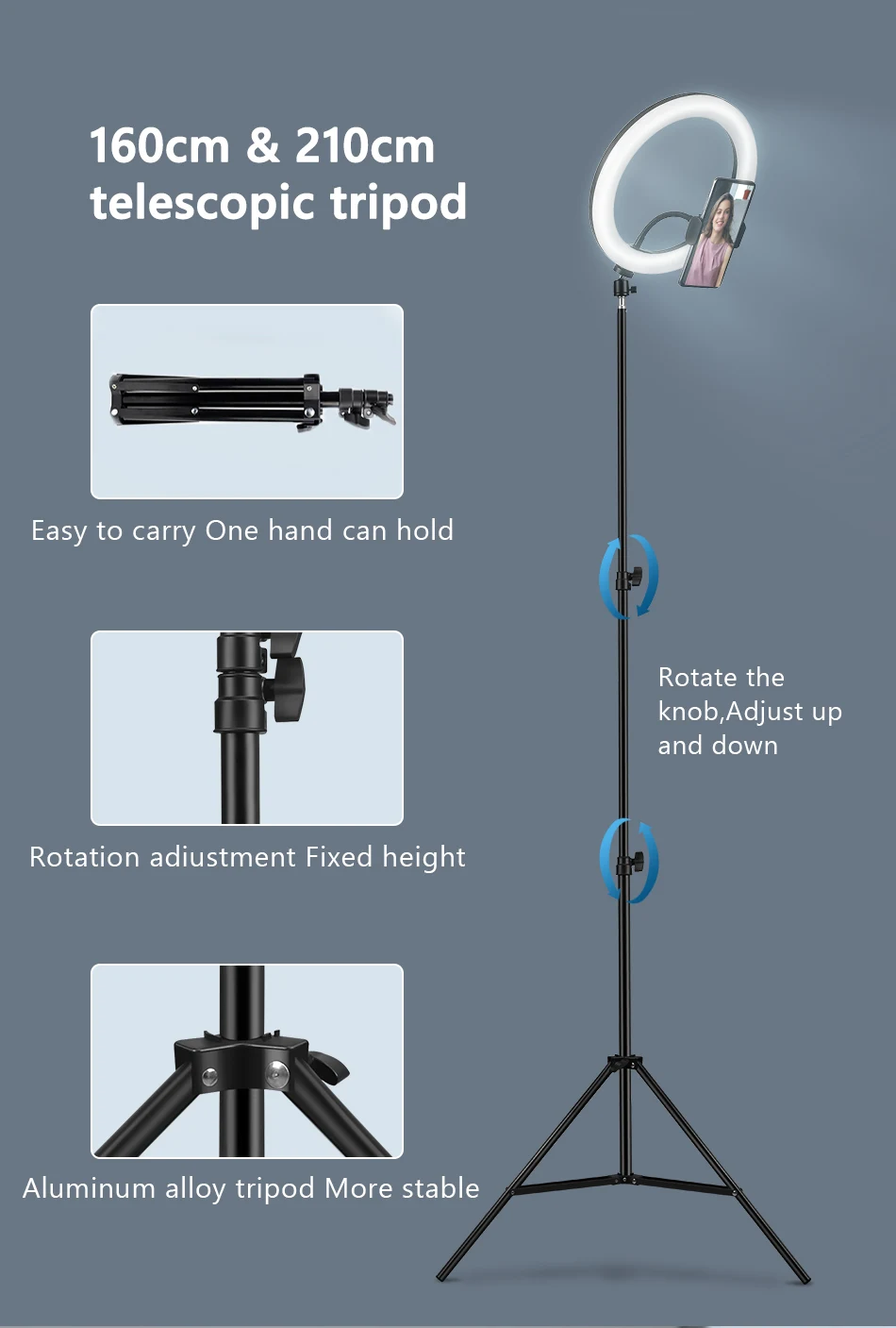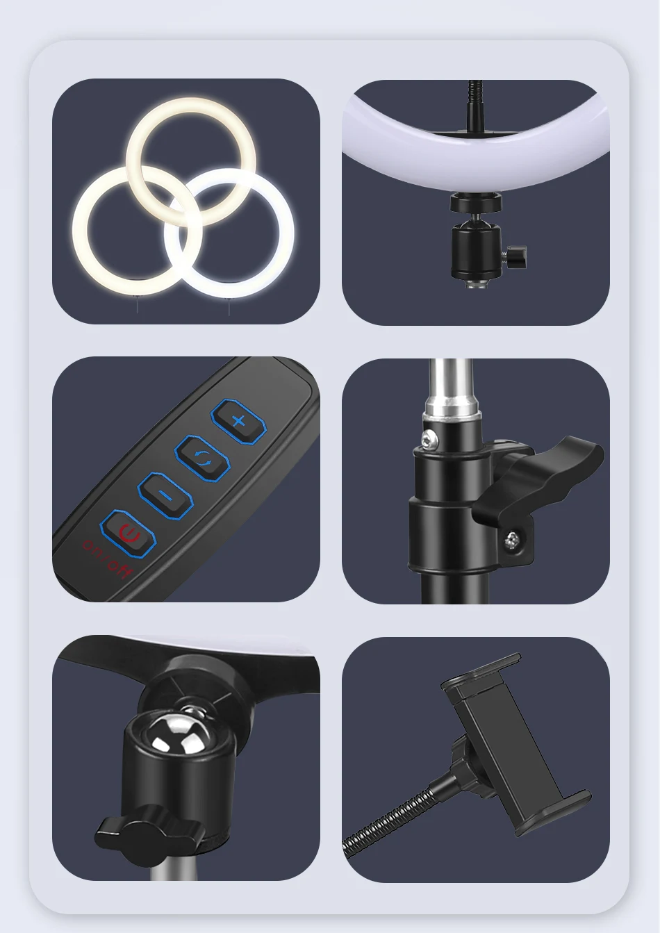 1).10 режимов яркости.2).3 цвета, плавный затемняющий светильник, белый светильник, теплый светильник, мягкий светильник.3). 1,34 м/1,6 M / 2M Регулируемый светильник костюм универсальный высокое и очень стабильно.4). Со студией, чтобы заполнить светильник фото, портрет автоспуска заполняющий светильник.5). Фотостудия кольцевой светодиодный светильник USB заглушка заполняющий светильник.6). Подходит для многих социальных, таких как создание, видео в режиме реального времени, студийный светильник, фотография.