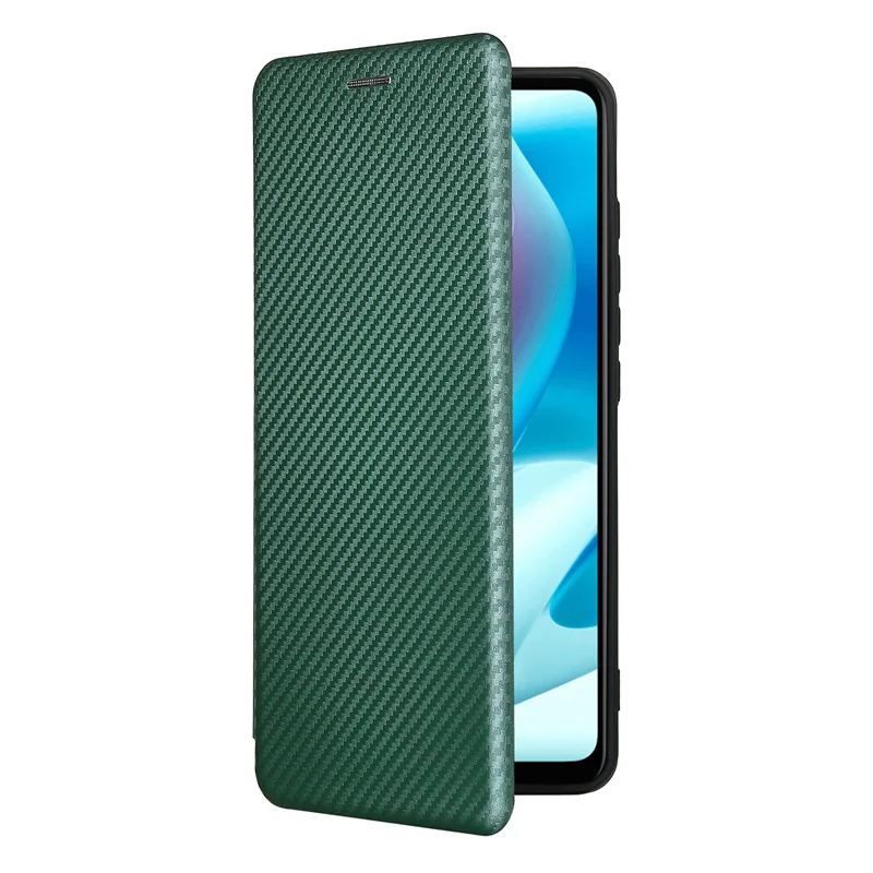 Чехол-книжка из углеродного волокна для OPPO Realme C21, кожаный че...
