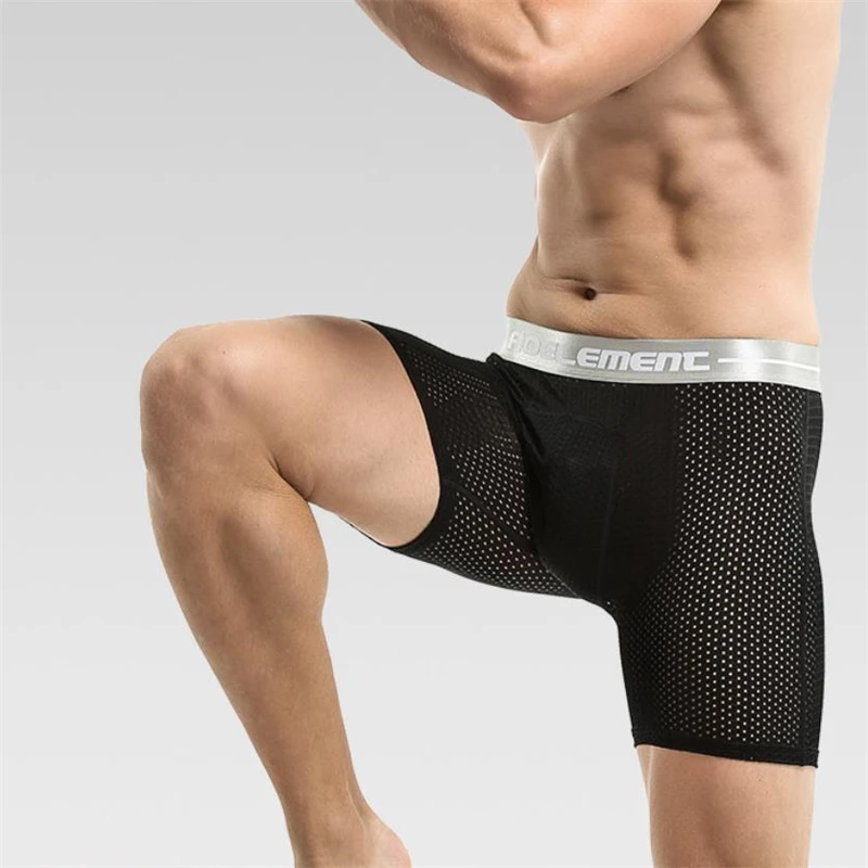 Трусы-боксеры мужские сетчатые, длинное облегающее дышащее нижнее б...