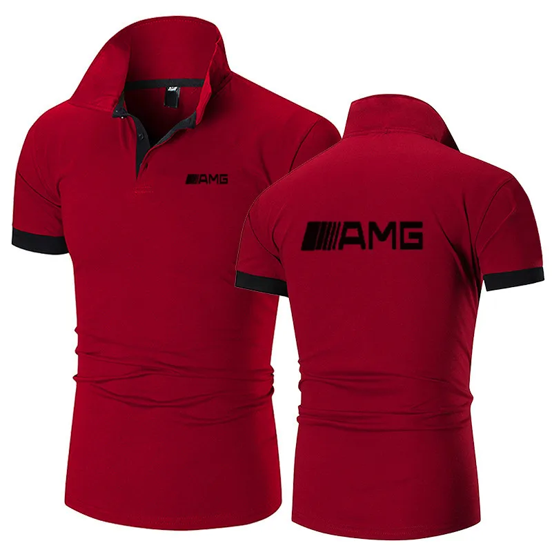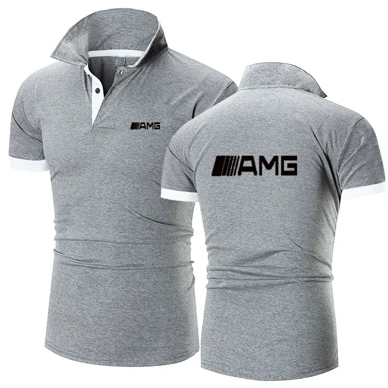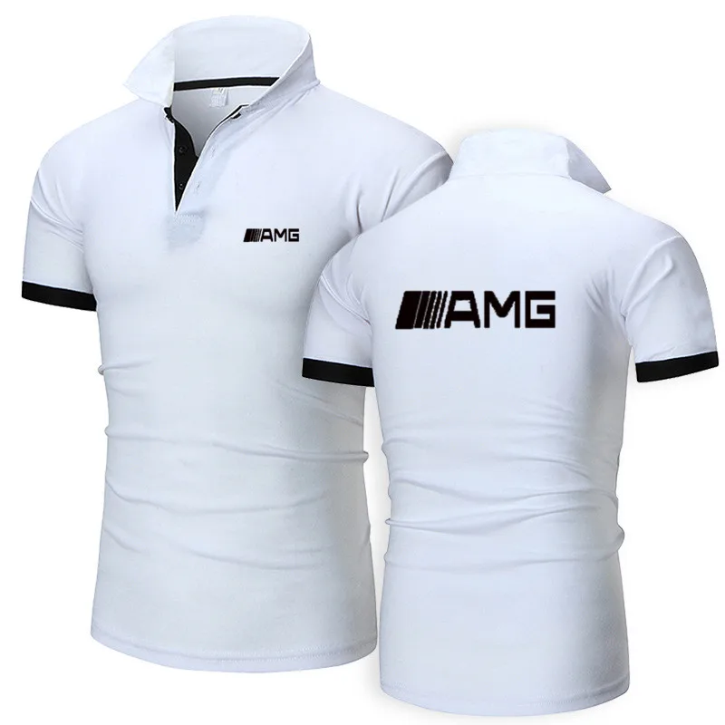 Новинка 2021, летняя модная мужская футболка Mercedes-Benz AMG, пуговицы, Большие футболки с отложным воротником и короткими рукавами