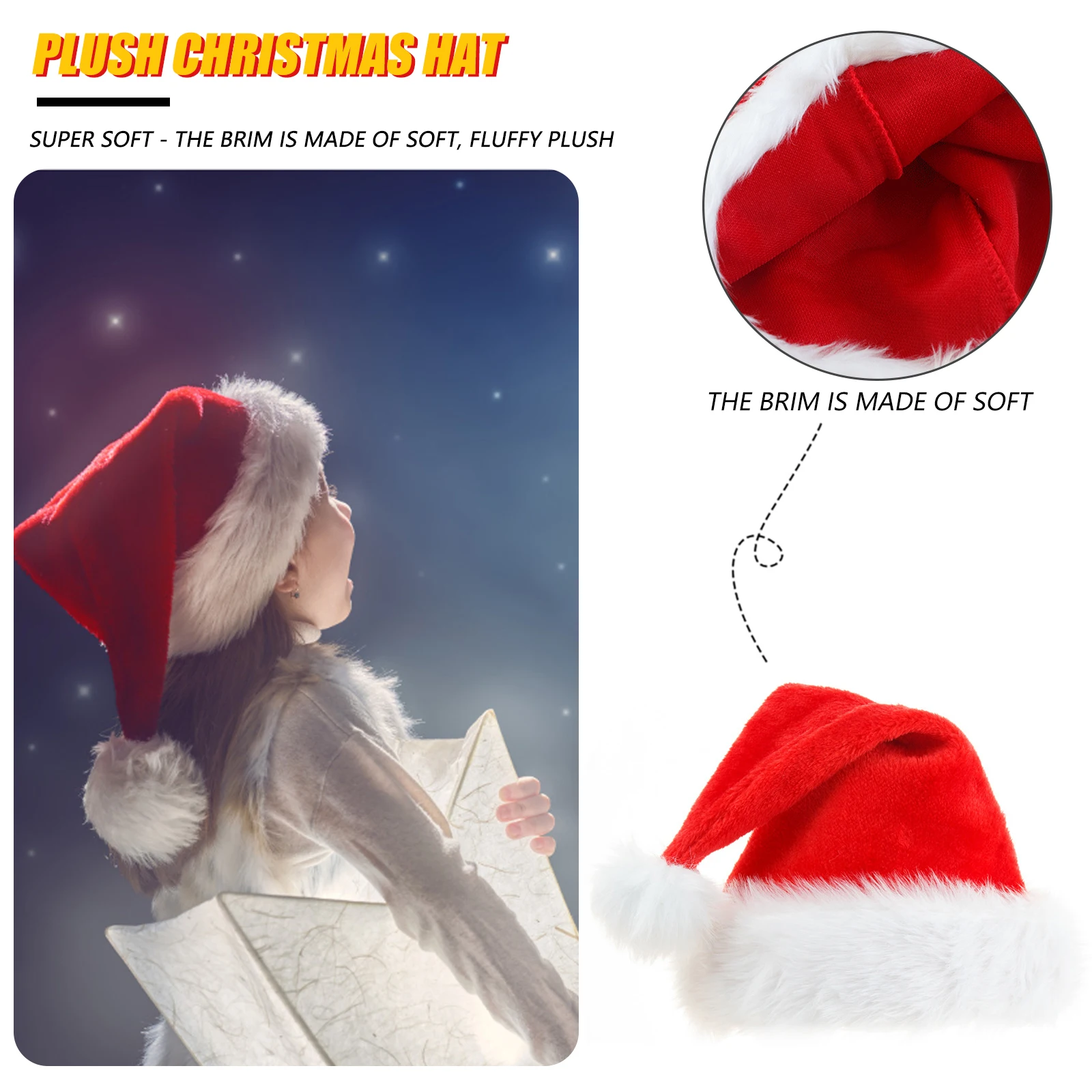 Плюшевые шляпы Санта-Клауса-рождественские детские шапки, традиционные красные белые вечерние шапки с плюшевой отделкой, Экстра утолщенный классический мех, унисекс бархатные удобные рождественские шапки для праздничной вечеринки, вечерние плюшевые красные бархатные шапки