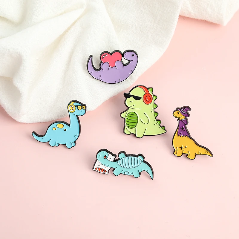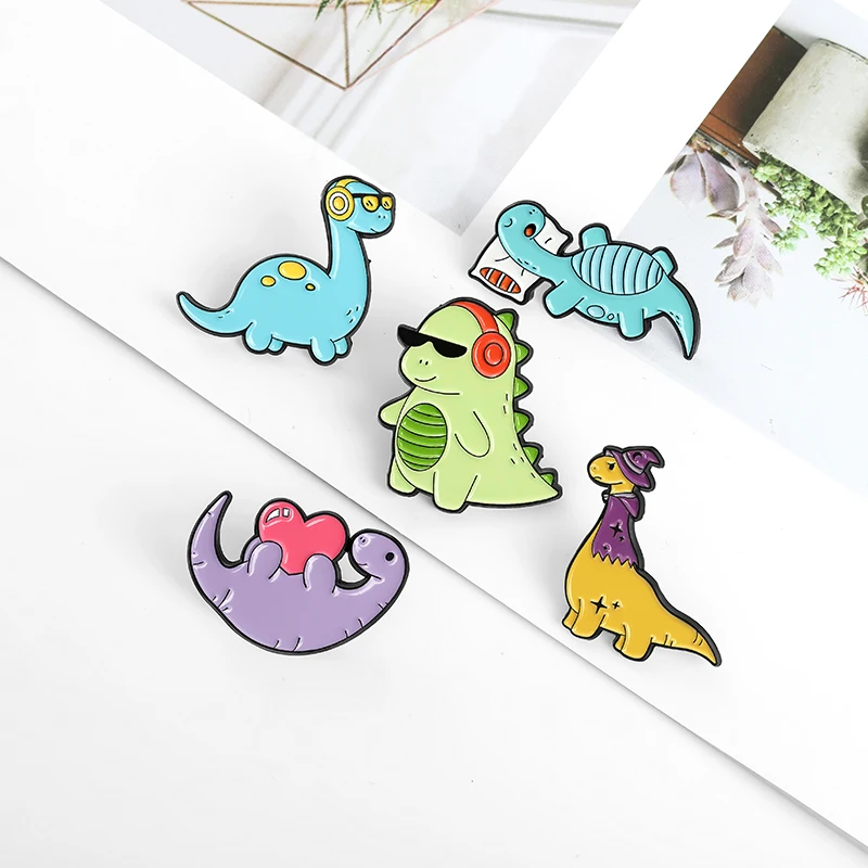 Эмалированные заколки с мультяшными динозаврами на лацканах, милая ...