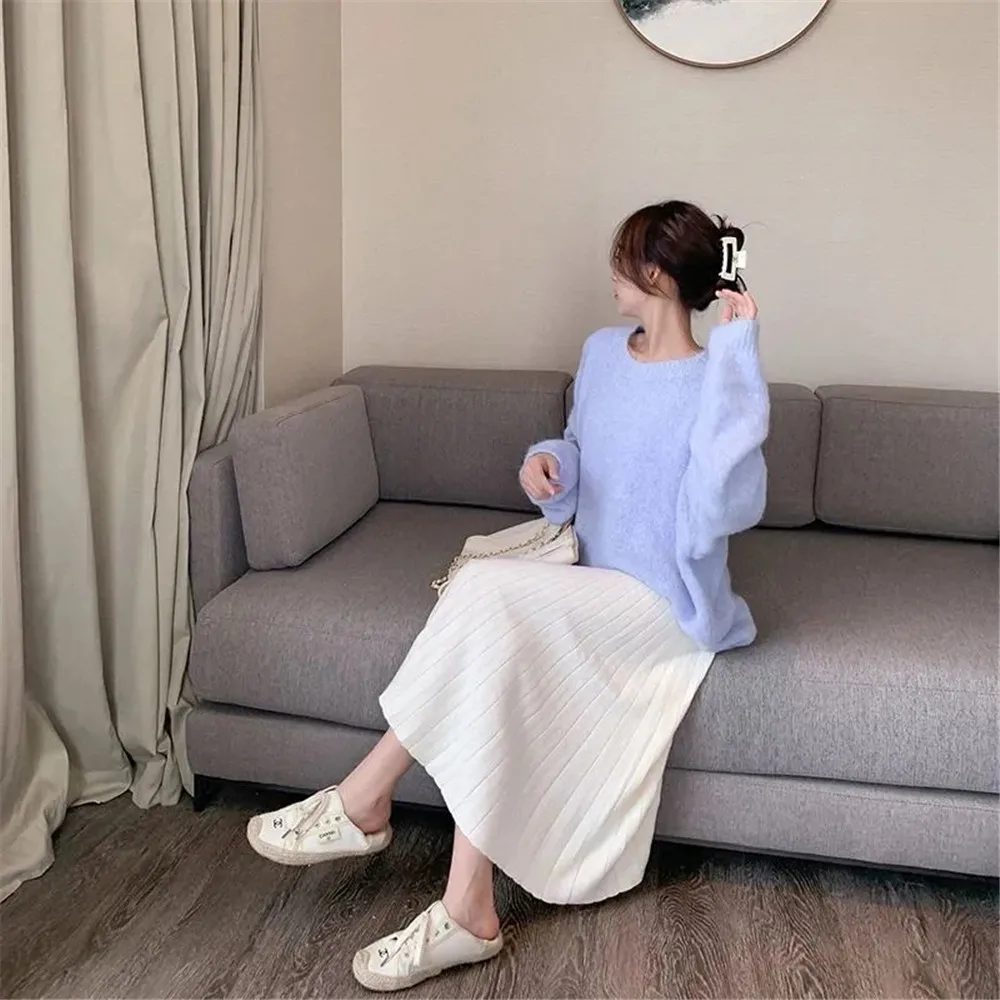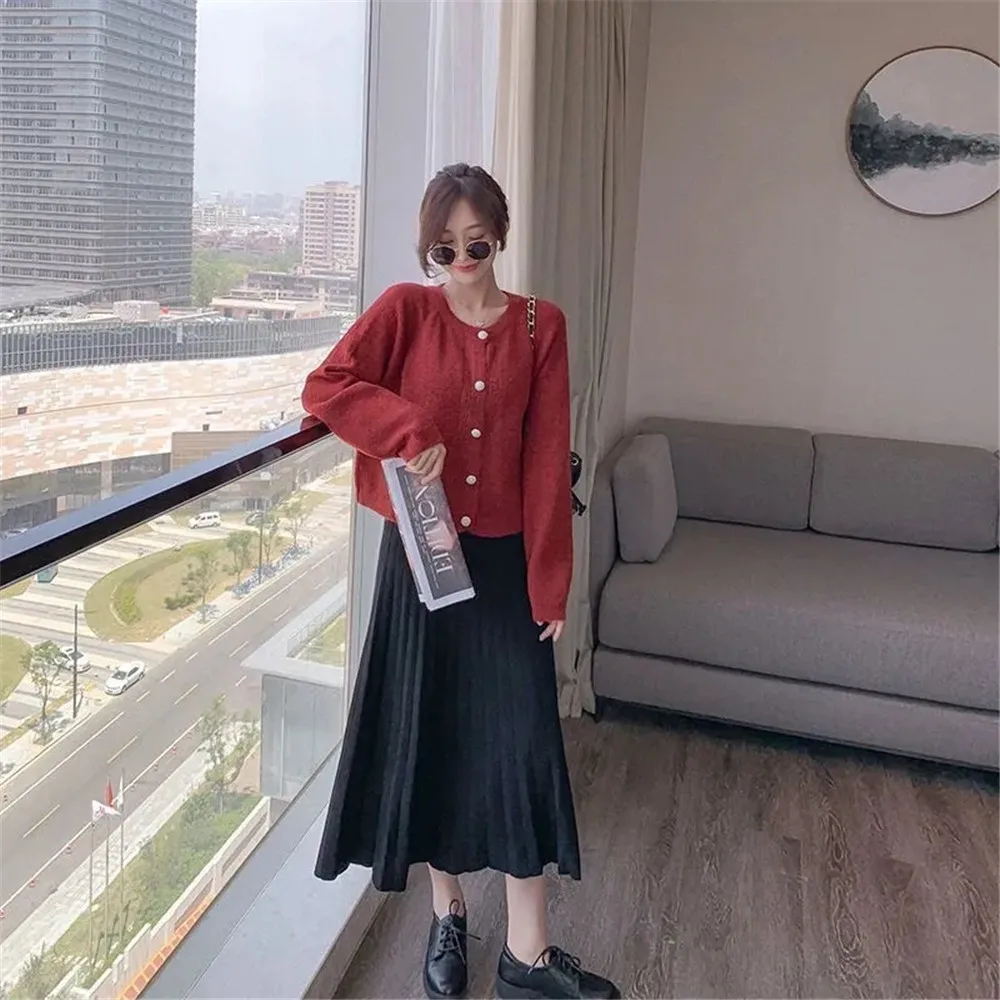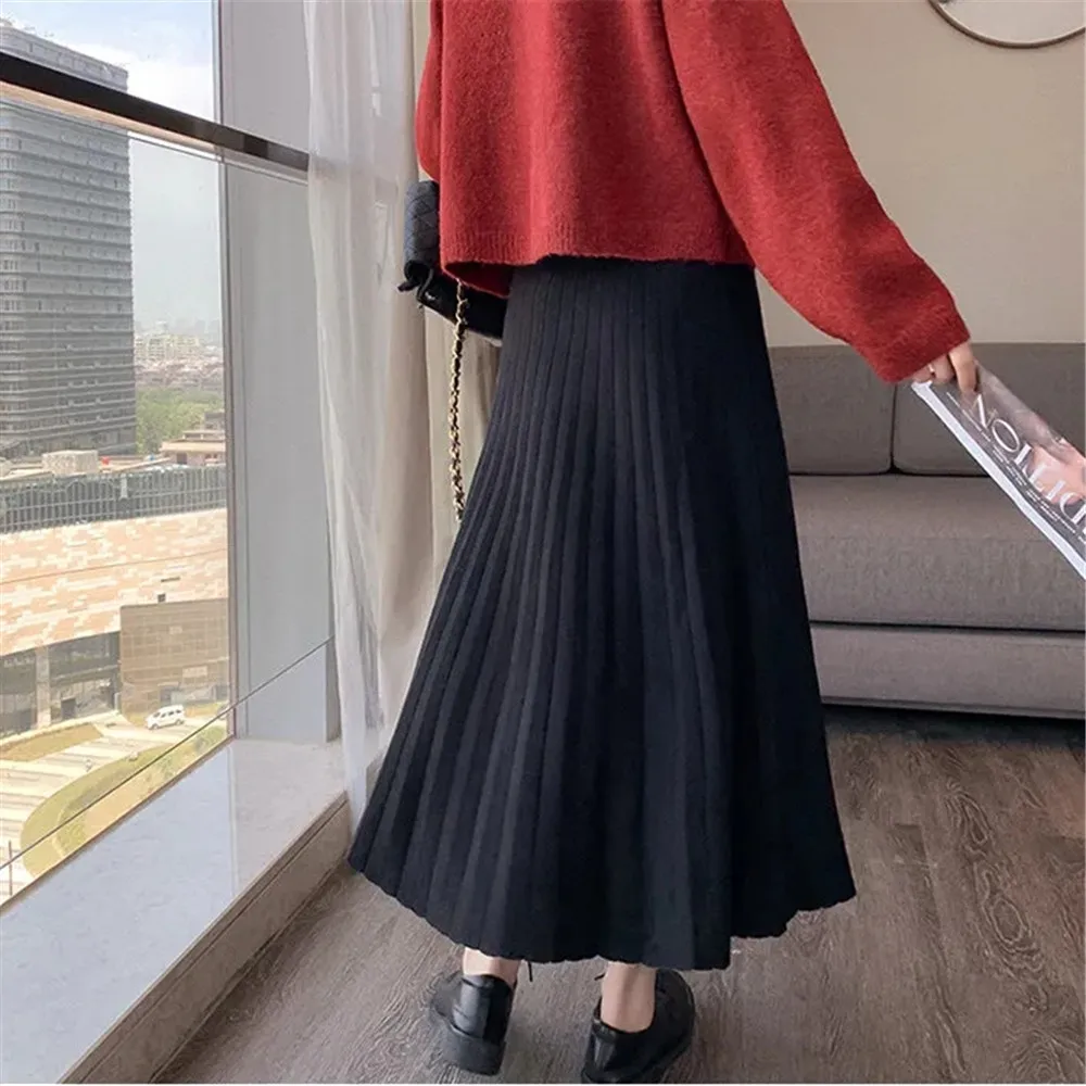 Женская модная осенне-зимняя трикотажная юбка со складками в Корейс...