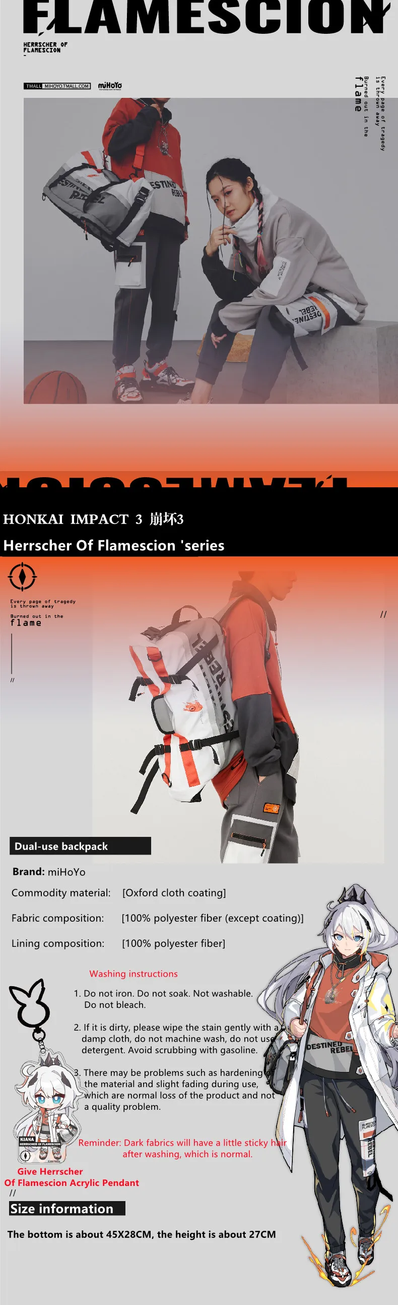 Аниме игра Honkai Impact 3 Косплей киана герrscher Of flamescion тема двойного назначения Рюкзак Сумка для пары Рождественский подарок