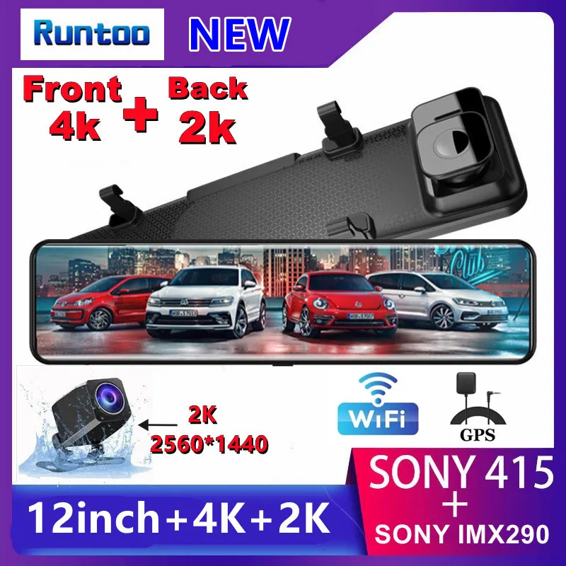 Автомобильный видеорегистратор 4K 2160P WiFi GPS-трекер видеорегистратор зеркало заднего вида 2K 1440P видеорегистратор с двумя объективами спереди и сзади
