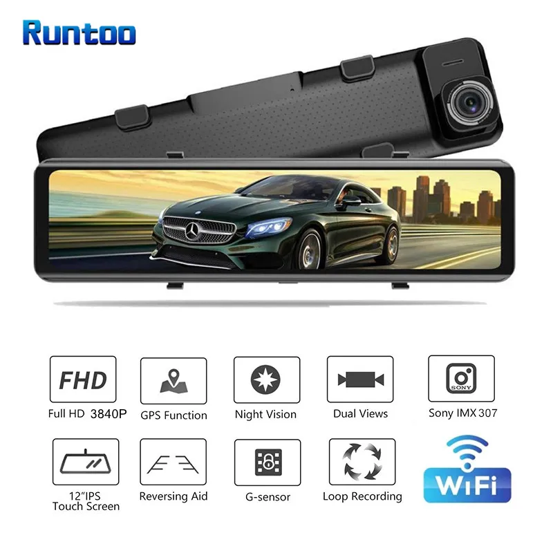 Применение: 4K Камера, потоковый медиа зеркало заднего вида, а также отличное ночное видение, видео, 24 часа в сутки для парковочной системы, столкновения сенсор, передние и задние двойные видео (широкий динамический диапазон), циклическая запись, Adjustabl угол обзора, Специальное крепление держатель