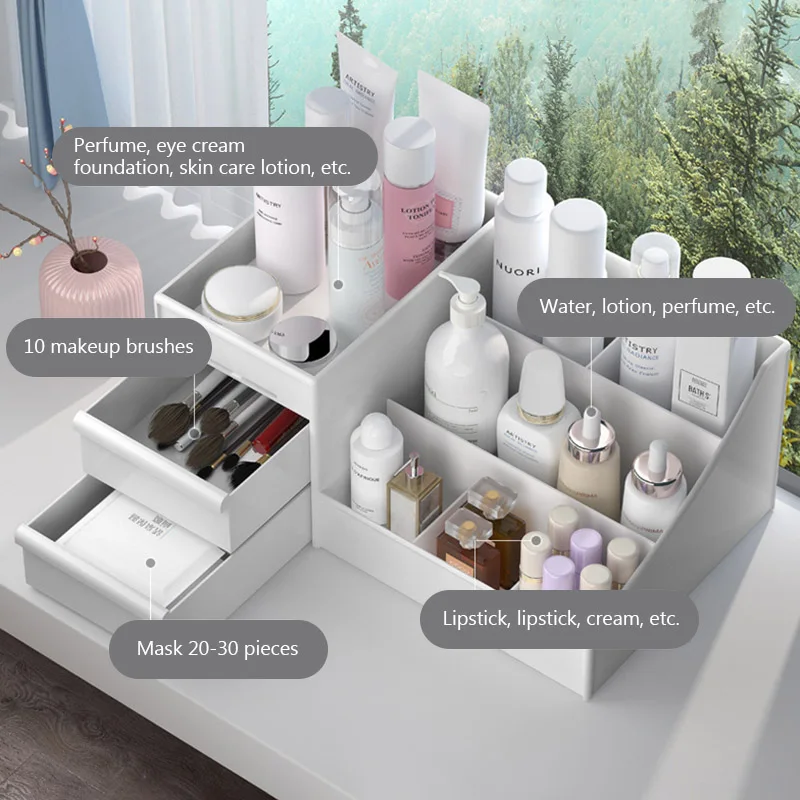 Большая емкость, косметический ящик для хранения, органайзер для ящика с косметикой, ювелирное изделие, лак для ногтей, контейнер для макияжа, Настольный ящик для хранения мелочей