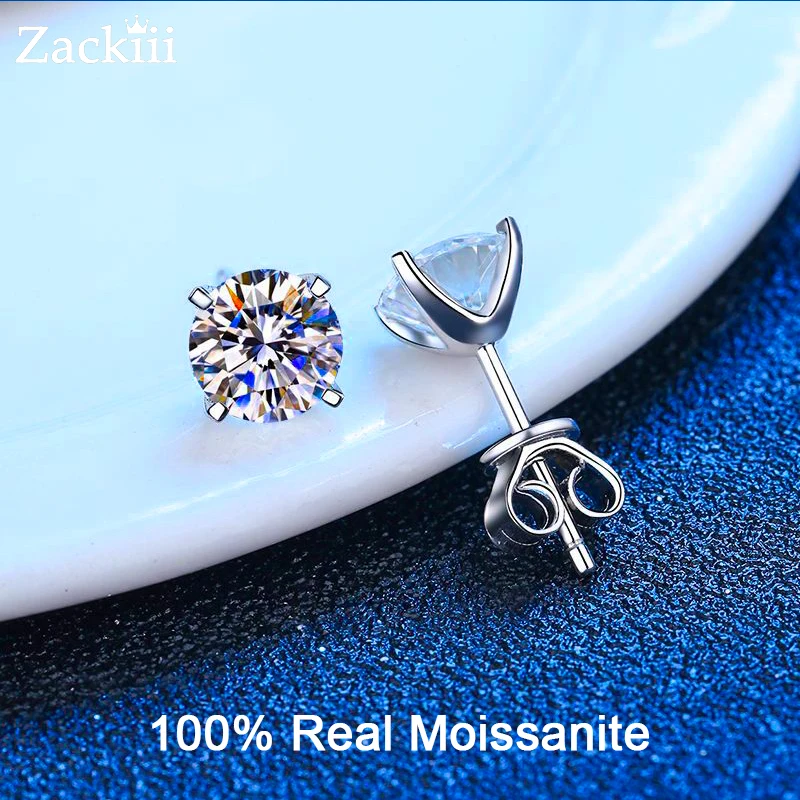 100% серьги-гвоздики из стерлингового серебра 0,4-4ct лаборатории серьги с муассанитом 4 зубец классические круглые серьги с бриллиантами для мужчин и женщин, подарок