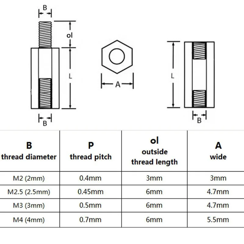1050 шт., твердая латунь, медь M2 M2.5 M3 M4, шестигранная стойка, искусственная кожа, Мужская-Женская распорка для печатной платы, материнской платы