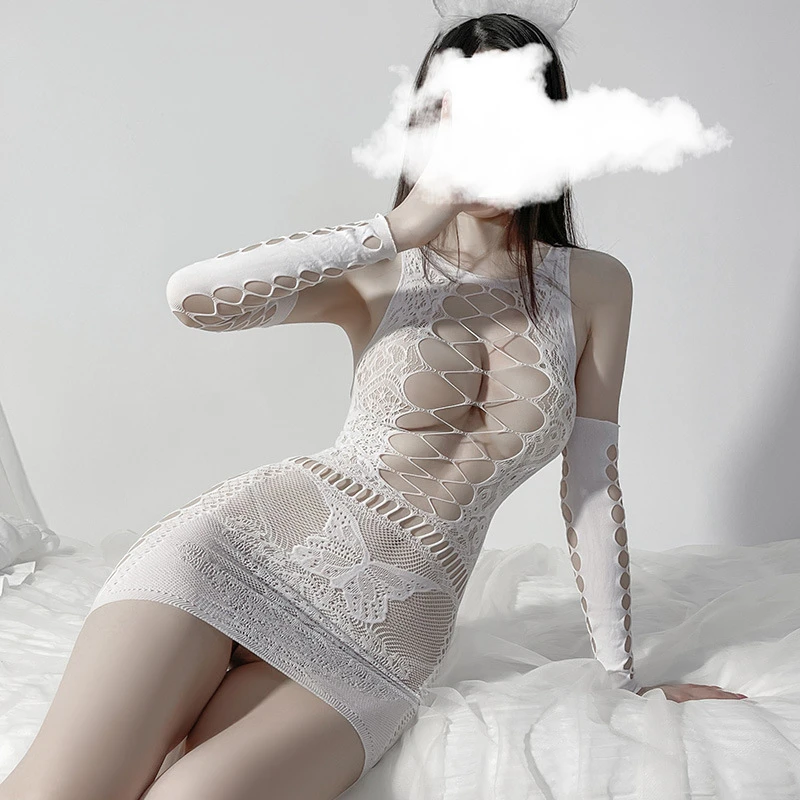 Летний комплект нижнего белья, женское сексуальное прозрачное ночное белье, популярная униформа, женское платье-комбинация с перчатками (без ободка)