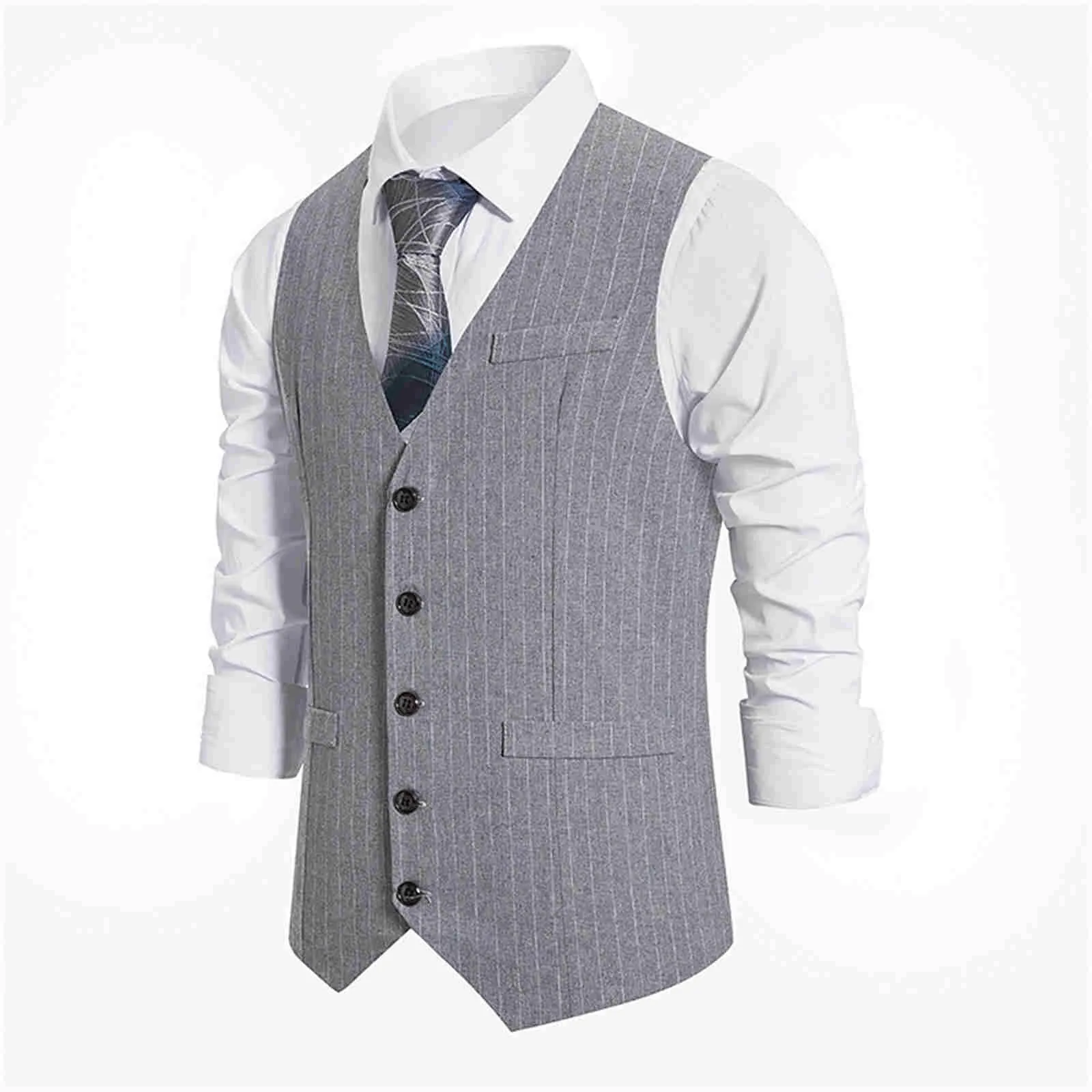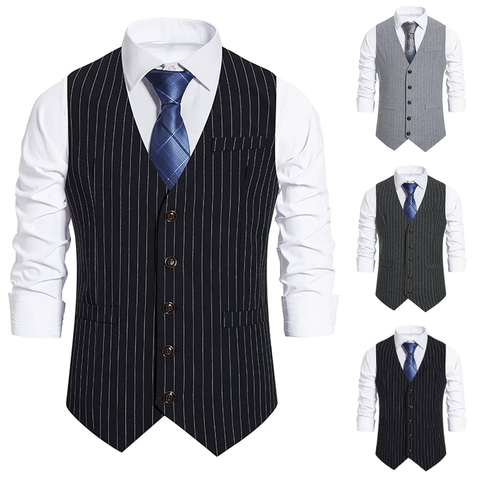 2021 полосатый жилет мужской костюм жилет классический черный серый...